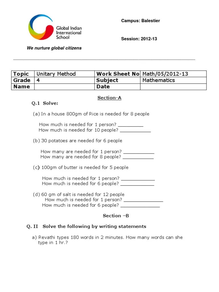 Finding free download math worksheets unitary method can be effortless and accessible, you can use the browser and visit websites that specialize in offering free resources. Be choosy about the websites you visit, choose renowned sites that offer high-quality, accurate downloads.